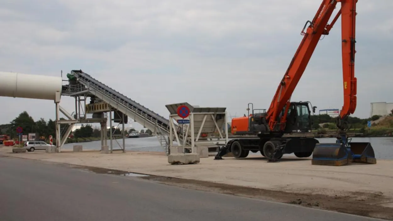 Ook het laden van schepen verloopt véél efficiënter. Via de laadbunker verloopt het puin via de transportband over de rijweg tot in het schip.